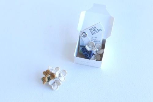 いつもの[花ブローチ]より少し落ち着いた色あいで仕上げました。[花ネックレス]もあります。ひとつひとつ違った表情があるのでぜひお気に入りを見つけに来てください🌟