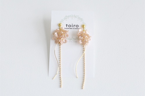 キラキラしたビーズが耳元でゆらゆら揺れて,これから暖かくなる春の耳元にアクセントとなるようイメージしました!一度ご覧いただけたら嬉しいです。