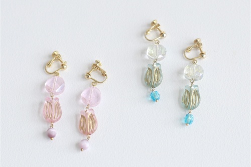 チェコビーズを使ったりと少しいつもと変わったイヤリングもあります。