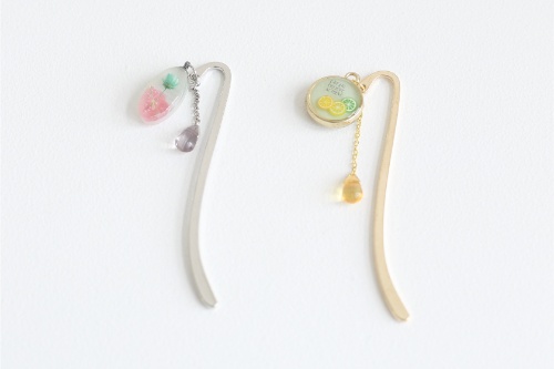 お花やモチーフを入れてブックマークを作りました。両面違う絵柄になっているのでお気に入りをみつけてくださいね☆