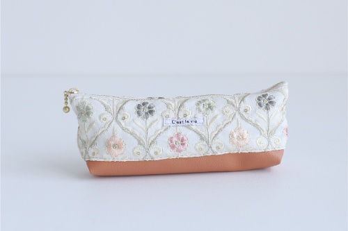 インド刺繍生地を使用し、ふわふわのキルト芯を挟みました♪ペンケースにもメガネケースにもおすすめです